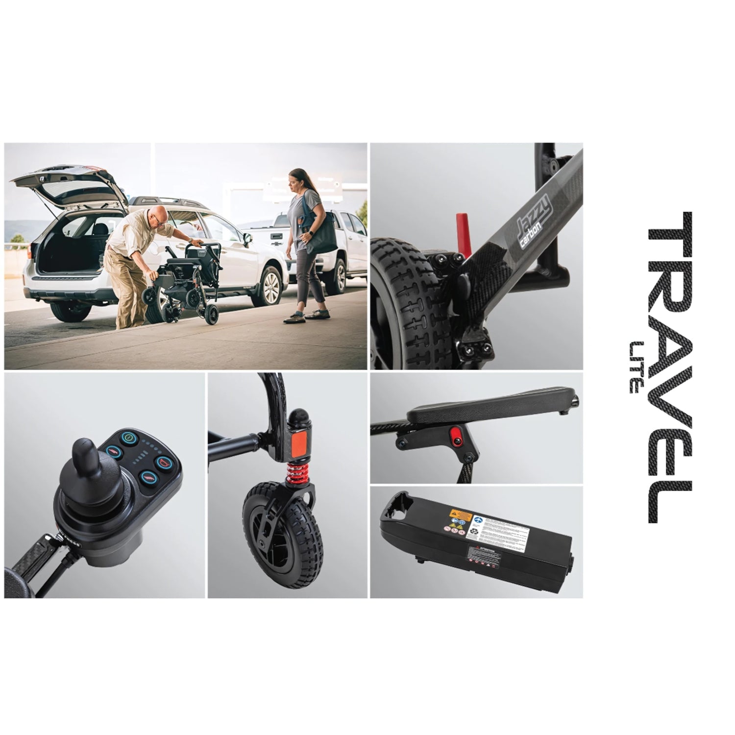 Le Jazzy Carbon se plie sans effort en quelques étapes simples, ce qui le rend incroyablement facile à transporter en voiture, en avion ou en train. Cependant, ne vous laissez pas tromper par sa portabilité. Le Jazzy Carbon est équipé de grandes roues tout-terrain et d'un système de suspension avant, ainsi que d'un coussin de siège confortable pour vous accompagner tout au long de votre journée chargée. Que vous prévoyiez une visite de week-end pour voir vos petits-enfants avec un programme d'activités complet ou que vous vous lanciez dans un voyage unique dans un complexe hôtelier de luxe, le Jazzy Carbon vous offre la mobilité et le contrôle dont vous avez besoin pour profiter de chaque instant.