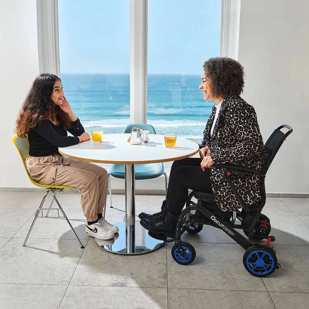 Traveling without the hassle of a bulky power wheelchair is now possible with the Q50 R Carbon. This ultra-compact chair folds down to just 14.5" in length, 22.5" in width, and 30" in height, making it easy to store anywhere. Whether you're taking a train, hopping on a bus, or packing it into the trunk of a small car, the Q50 R Carbon is perfect for your adventures near and far. Plus, it's incredibly lightweight, so lifting it in and out is a breeze.