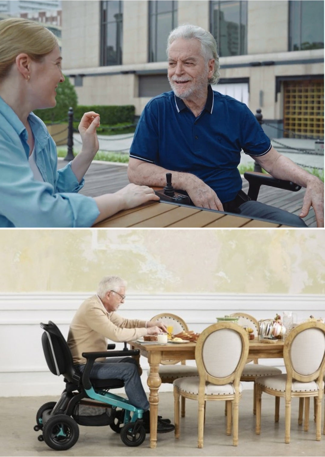 “Hi, I just saw this intelligent electric wheelchair at the tradeshow in Schaumburg, Illinois. Actually, it can’t really be called a wheelchair because it completely subverted my perception of electric wheelchairs. Its design is very cool, and it’s also very easy to operate. It can even fold up automatically, which is really convenient. I’m considering buying one for my mother so she can ride in the chair and take walks to farther places on her own. It would make shopping trips less tiring for her too.”